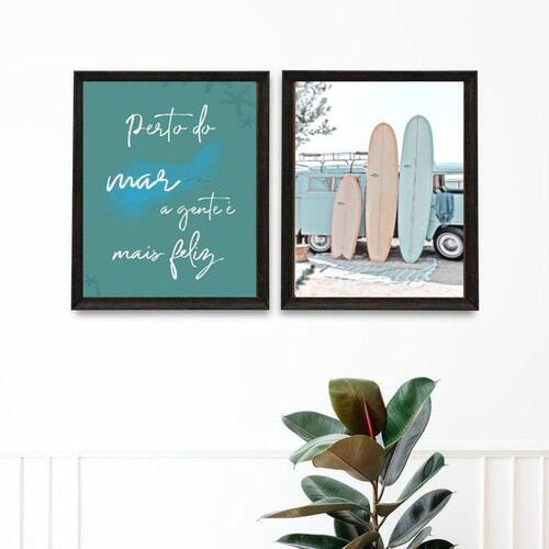 Kit 2 quadros praia mar felicidade - surf 45x34cm - com vidro Moldura: madeira branca Informações do produto tire todas as suas dúvidas no descritivo abaixo: decoração para quarto, sala, cozinha, escritório, área gourmet e muito mais. Chega de paredes vazias medidas - cada peça tem 45x34cm a3 . Material do papel - papel fotográfico brilhante de altíssima resolução acabamento - todos os quadros são acompanhados de vidro para proteção da imagem. - moldura em madeira maciça na cor preta ou branca conforme produto escolhido e pendurador . - os quadros são embalados de forma segura com plástico bolha com camada dupla de acordo com o tamanho dos quadros. Garantia - garantia de 3 meses. Meu quadro chegou. Como posso fixá-lo Você precisa apenas de um martelo e um prego, pois os quadros já vão acompanhados de penduradores. Esta é a forma mais indicada. Como posso limpar meu quadro A limpeza é feita como um móvel comum da sua casa. Apenas um pano seco ou espanador são suficientes para tal