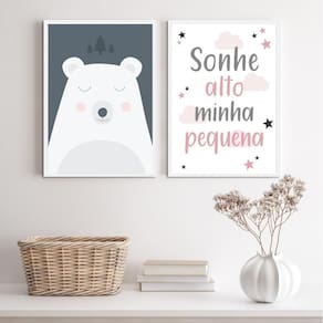 Kit 2 quadros quarto bebê urso rosa e cinza 33x24cm Moldura: madeira preta Informações do produto tire todas as suas dúvidas no descritivo abaixo: decoração para quarto, sala, cozinha, escritório, área gourmet e muito mais. Chega de paredes vazias medidas - cada peça tem 33x24cm a4 . Material do papel - papel fotográfico brilhante de altíssima resolução acabamento - todos os quadros são acompanhados de uma película de acetato para proteção da imagem. - os quadros são embalados de forma segura com plástico bolha com camada dupla de acordo com o tamanho dos quadros. Garantia - garantia de 3 meses. Meu quadro chegou. Como posso fixá-lo Você precisa apenas de um martelo e um prego, pois os quadros já vão acompanhados de penduradores. Esta é a forma mais indicada. Caso prefira, você pode utilizar uma fita dupla face neste caso, sugerimos de alta qualidade para evitar que descole e seu quadro caia . Como posso limpar meu quadro A limpeza é feita como um móvel comum da sua casa. Apenas um pano seco ou espanador são suficientes para tal
