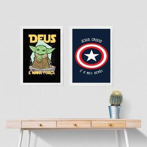 Kit 2 quadros quarto jovem cristão 24x18cm - com vidro