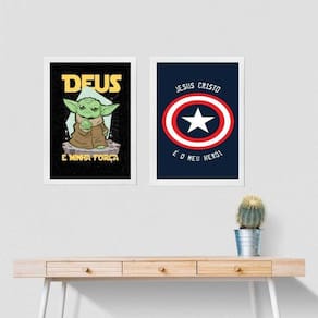 Kit 2 quadros quarto jovem cristão 33x24cm - com vidro