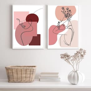 O Kit 2 Quadros Para Quarto Mulher Contorno Linha Rosê 33X24Cm é perfeito para quem busca uma decoração moderna e delicada. Com moldura de madeira branca, esse conjunto de quadros é ideal para dar um toque especial em qualquer ambiente, seja no quarto, sala, cozinha, escritório, área gourmet e muito mais.