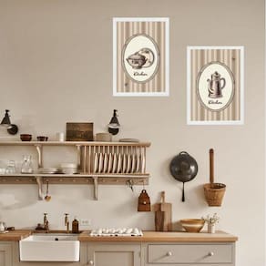 Kit 2 quadros retrô cozinha de vó 33x24cm - com vidro