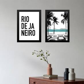 Kit 2 Quadros Rio De Janeiro - Tipografia e Fotografia 45x34cm - com vidro - Cor: Moldura branca