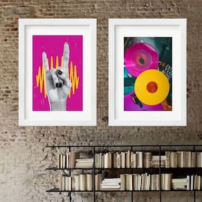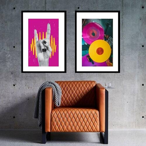 Kit 2 quadros rock rosa - 60x48cm Moldura: madeira branca Informações do produto tire todas as suas dúvidas no descritivo abaixo: decoração para quarto, sala, cozinha, escritório, área gourmet e muito mais. Chega de paredes vazias medidas - cada peça tem 60x48cm . Material do papel - papel fotográfico brilhante de altíssima resolução acabamento - todos os quadros são acompanhados de vidro para proteção da imagem. - moldura em madeira maciça na cor preta ou branca conforme produto escolhido e pendurador. - paspatur branco com 7cm de largura - os quadros são embalados de forma segura com plástico bolha com camada dupla de acordo com o tamanho dos quadros. Garantia - garantia de 3 meses. Meu quadro chegou. Como posso fixá-lo Você precisa apenas de um martelo e um prego, pois os quadros já vão acompanhados de penduradores. Esta é a forma mais indicada. Como posso limpar meu quadro A limpeza é feita como um móvel comum da sua casa. Apenas um pano seco ou espanador são suficientes para tal