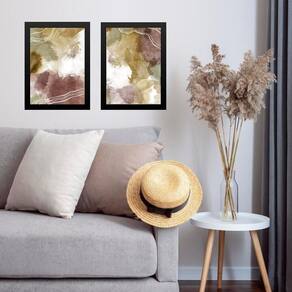 Kit 2 quadros sala abstratos aquarelados 33x24cm - com vidro Cor: moldura branca Informações do produto tire todas as suas dúvidas no descritivo abaixo: decoração para quarto, sala, cozinha, escritório, área gourmet e muito mais. Chega de paredes vazias medidas - cada peça tem 33x24cm a4 . Material do papel - papel fotográfico brilhante de altíssima resolução acabamento - todos os quadros são acompanhados de vidro para proteção da imagem. - moldura em madeira maciça na cor preta ou branca conforme produto escolhido e pendurador . - os quadros são embalados de forma segura com plástico bolha com camada dupla de acordo com o tamanho dos quadros. Garantia - garantia de 3 meses. Meu quadro chegou. Como posso fixá-lo Você precisa apenas de um martelo e um prego, pois os quadros já vão acompanhados de penduradores. Esta é a forma mais indicada. Como posso limpar meu quadro A limpeza é feita como um móvel comum da sua casa. Apenas um pano seco ou espanador são suficientes para tal