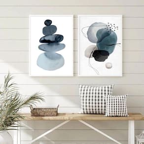Kit 2 quadros sala abstratos minimalistas azuis 33x24cm