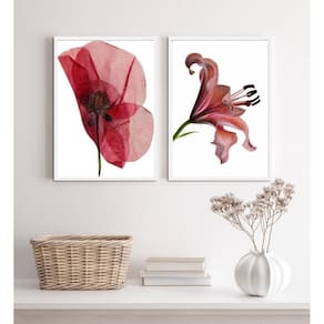 Kit 2 quadros sala flores modernas sóbrias neutras 24x18cm