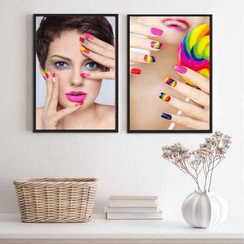 Kit 2 quadros para salão manicure- unhas coloridas 33x24cm - com vidro Moldura: madeira preta Informações do produto tire todas as suas dúvidas no descritivo abaixo: decoração para quarto, sala, cozinha, escritório, área gourmet e muito mais. Chega de paredes vazias medidas - cada peça tem 33x24cm a4 . Material do papel - papel fotográfico brilhante de altíssima resolução acabamento - todos os quadros são acompanhados de vidro para proteção da imagem. - moldura em madeira maciça na cor preta ou branca conforme produto escolhido e pendurador . - os quadros são embalados de forma segura com plástico bolha com camada dupla de acordo com o tamanho dos quadros. Garantia - garantia de 3 meses. Meu quadro chegou. Como posso fixá-lo Você precisa apenas de um martelo e um prego, pois os quadros já vão acompanhados de penduradores. Esta é a forma mais indicada. Como posso limpar meu quadro A limpeza é feita como um móvel comum da sua casa. Apenas um pano seco ou espanador são suficientes para tal Ean: 7890053172082