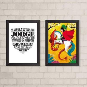 Kit 2 Quadros São Jorge 45x34cm - Vidro e Moldura Branca