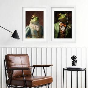 Kit 2 quadros sapo e perereca- 60x48cm Moldura: madeira preta Informações do produto tire todas as suas dúvidas no descritivo abaixo: decoração para quarto, sala, cozinha, escritório, área gourmet e muito mais. Chega de paredes vazias medidas - cada peça tem 60x48cm . Material do papel - papel fotográfico brilhante de altíssima resolução acabamento - todos os quadros são acompanhados de vidro para proteção da imagem. - moldura em madeira maciça na cor preta ou branca conforme produto escolhido e pendurador. - paspatur branco com 7cm de largura - os quadros são embalados de forma segura com plástico bolha com camada dupla de acordo com o tamanho dos quadros. - de 3 meses. Meu quadro chegou. Como posso fixá-lo Você precisa apenas de um martelo e um prego, pois os quadros já vão acompanhados de penduradores. Esta é a forma mais indicada. Como posso limpar meu quadro A limpeza é feita como um móvel comum da sua casa. Apenas um pano seco ou espanador são suficientes para tal Marca: Não Informado