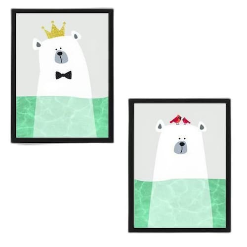 Kit 2 Quadros Sea Bear 33X24Cm - Com Vidro Moldura Preta