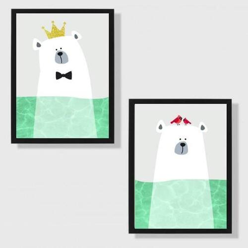 Kit 2 Quadros Sea Bear 45X34Cm - Com Vidro Moldura Preta