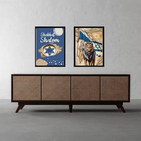 Kit 2 Quadros Shabbat Shalom - Leão 33X24Cm