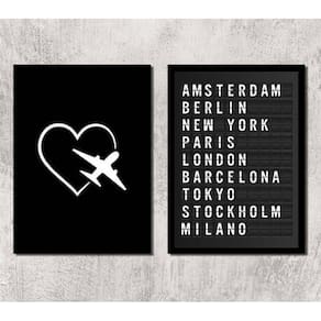 Kit 2 quadros travel placa de aeroporto 24x18cm Moldura: madeira preta Informações do produto tire todas as suas dúvidas no descritivo abaixo: decoração para quarto, sala, cozinha, escritório, área gourmet e muito mais. Chega de paredes vazias medidas - cada peça tem 24x18cm a5 . Material do papel - papel fotográfico brilhante de altíssima resolução acabamento - todos os quadros são acompanhados de uma película de acetato para proteção da imagem. - os quadros são embalados de forma segura com plástico bolha com camada dupla de acordo com o tamanho dos quadros. Garantia - garantia de 3 meses. Meu quadro chegou. Como posso fixá-lo Você precisa apenas de um martelo e um prego, pois os quadros já vão acompanhados de penduradores. Esta é a forma mais indicada. Caso prefira, você pode utilizar uma fita dupla face neste caso, sugerimos de alta qualidade para evitar que descole e seu quadro caia . Como posso limpar meu quadro A limpeza é feita como um móvel comum da sua casa. Apenas um pano seco ou espanador são suficientes para tal