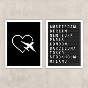 Kit 2 quadros travel placa de aeroporto 45x34cm Moldura: madeira branca Informações do produto tire todas as suas dúvidas no descritivo abaixo: decoração para quarto, sala, cozinha, escritório, área gourmet e muito mais. Chega de paredes vazias. Medidas - cada peça tem 45x34cm a3 . Material do papel - papel fotográfico brilhante de altíssima resolução acabamento - todos os quadros são acompanhados de uma película de acetato para proteção da imagem. - os quadros são embalados de forma segura com plástico bolha com camada dupla de acordo com o tamanho dos quadros. Garantia - garantia de 3 meses. Meu quadro chegou. Como posso fixá-lo Você precisa apenas de um martelo e um prego, pois os quadros já vão acompanhados de penduradores. Esta é a forma mais indicada. Caso prefira, você pode utilizar uma fita dupla face neste caso, sugerimos de alta qualidade para evitar que descole e seu quadro caia . Como posso limpar meu quadro A limpeza é feita como um móvel comum da sua casa. Apenas um pano seco ou espanador são suficientes para tal