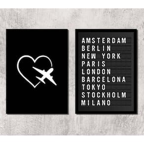 Kit 2 quadros travel placa de aeroporto 45x34cm