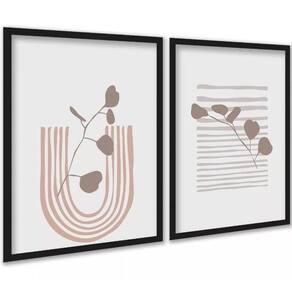 Kit 2 Quadros Ultra Minimalistas Neutros Boho 33X24Cm Vidro