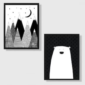 Kit 2 quadros urso escandinavo 24x18cm Moldura: madeira preta Informações do produto tire todas as suas dúvidas no descritivo abaixo: decoração para quarto, sala, cozinha, escritório, área gourmet e muito mais. Chega de paredes vazias medidas - cada peça tem 24x18cm a5 . Material do papel - papel fotográfico brilhante de altíssima resolução acabamento - todos os quadros são acompanhados de uma película de acetato para proteção da imagem. - moldura em madeira maciça na cor branca e pendurador móvel que pode ser retirado facilmente caso deseje fixar com fita dupla face. - os quadros são embalados de forma segura com plástico bolha com camada dupla de acordo com o tamanho dos quadros. - de 3 meses prazo de envio pedimos 24 horas úteis no máximo para enviar seu pedido após o envio, segue os prazos normais dos correios, cerca de 7 exceto para norte e nordeste, que pode ser de até 14 . Em diversas cidades, este prazo normalmente é reduzido, mas depende do prazo dos correios. Meu quadro chegou. Como posso fixá-lo Você precisa apenas de um martelo e um prego, pois os quadros já vão acompanhados de penduradores. Esta é a forma mais indicada. Caso prefira, você pode utilizar uma fita dupla face neste caso, sugerimos de alta qualidade para evitar que descole e seu quadro caia . Como posso limpar meu quadro A limpeza é feita como um móvel comum da sua casa. Apenas um pano seco ou espanador são suficientes para tal Marca: Não Informado
