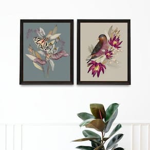 Kit 2 quadros para varanda passarinho e borboleta 33x24cm - com vidro