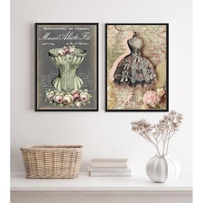 Kit 2 quadros vintage moda- vestido e espartilho 45x34cm - com vidro