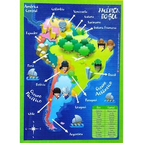 Kit com 2 quebra cabeças com tema de mapas: Brasil e América do Sul. Indicado para criança acima de 7 anos Tamanho montado: 23 x 32 cm cada Peças: 80 peças cada, total 120 Material: papel cartão. Inmetro: CE-BRI/BRICS 00032-14 NM 300/2002 OCP 0098 Referência: 3.03.435 Ean: 7897447203131