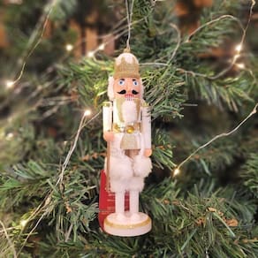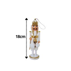 Este Quebra-Nozes decorado em branco e dourado é a peça de luxo que vai elevar sua decoração natalina. Com 28cm de altura, ele é adornado com um bastão com uma estrela dourada brilhante e um chapéu macio em pelúcia, que trazem sofisticação e charme. Além de sua beleza, esse Quebra-Nozes conta com um braço esquerdo articulado e uma boca funcional, acionada por uma alavanca em plástico, tornando-o não apenas decorativo, mas também interativo. Ideal para decorar entradas, mesas ou prateleiras, essa peça é perfeita para quem busca elegância e tradição com um toque de diversão.