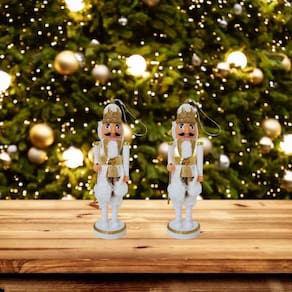 Kit 2 Quebra Nozes Decor Pendente 17cm Branco e Dourado Luxo