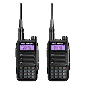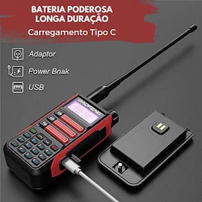 Rádio comunicador bidirecional Tri-Band VHF/UHF de alto desempenho, com alcance de até 80km em condições ideais. Possui 128 canais de memória, display LCD iluminado com backlight em 3 cores, função VOX (transmissão por voz), Dual Watch (monitoramento simultâneo de dois canais), varredura de frequência e canais, Time Out Timer (TOT), DTMF, reversão de frequência, rádio FM integrado, lanterna, economia de energia, BCLO (bloqueio de canal ocupado), programação por PC e é à prova d'água e resistente a quedas.Indicador de carga da bateria