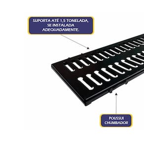 Kit 2 Ralo Grelha Com Caixilho em Aço Galvanizado Preto 20x100cm