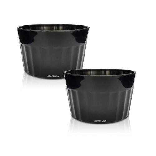O ramequim é ideal para servir doces, sobremesas, molhos e muito mais, perfeito para decorar sua mesa com petiscos e porções de degustação, deixe sua mesa com mais elegância com os copos ramequim da krystalon. Características: material: plástico polipropileno não é porcelana/ ceramica, altura: 4,5 cm, diâmetro: 7,5 cm, capacidade: 90 ml, cor: preto, tamanho: ùnico, quantidade: 2 peças Ficha técnica - Forma: Redonda - Capacidade em volume: 90 ml - Cor principal: Preto - Unidades por embalagem: 2 - Material: Melamina - Cor: Preto - Utilizações seguras: Lava-louças - Com data de validade: Não - Fonte do produto: KrystalON Copos - Diâmetro: 7,5 cm