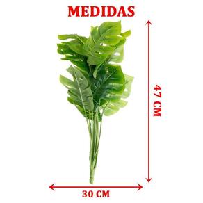 Kit 2 Ramo Costela De Adão Planta Artificial 47cm Com 12 Folhas;