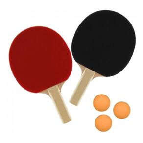 Kit contendo 2 Raquetes de Ping Pong Profissional, 3 bolinhas laranja e a Rede completa.