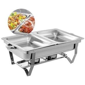 Kit 2 Rechaud Retangular 9 L Com 2 Cubas 1/2 Banho Maria O Rechaud Retangular 9L Brinovar ajuda a manter seus alimentos aquecidos por muito mais tempo após o preparo E além de manter suas refeições aquecidas durante o período da refeição, ele também traz um aspecto decorativo para o local, deixando o ambiente gourmet. Com diversas vantagens, o rechaud possui suporte dobrável, o que ocupa menos espaço para transporte de um evento para outro, conta também com alças laterais para facilitar o manuseio, a tampa removível conta com uma escora embutida no suporte para não atrapalhar na hora de servir. Ideal para quem tem um estabelecimento, vai fazer um evento ou sempre gosta de receber um número maior de pessoas em casa. ESPECIFICAÇÕES TÉCNICAS: Marca: BRINOVAR Cor: Prata Acabamento: Acetinado Formato: Retangular Material: Aço Inoxidável 201 Capacidade Total: 9 litros Dimensões do Produto Montado: Comprimento: 63 cm Largura: 35 cm Altura: 30 cm Quantidade de Cubas para Comida: 2 un Medida de cada Cuba para Comida: 26 C x 32 L cm Tipo de Acendedor: Fogareiro Quantidade de Acendedor: 2 un Ambiente Recomendado: Buffet, Refeitório, Cozinha, Festas : 90 dias CUIDADOS: Esta peça contém bordas cortantes, manusear com cuidado. Não use palha de aço, produtos químicos, não usar ácido muriático, água sanitária ou qualquer outro solvente para lavar objetos na pia. Nunca deixar objetos metálicos sobre a peça por períodos muito longos, para evitar a corrosão. Para manter o brilho do seu rechaud, recomendamos o uso da pasta para polir e remover manchas em superfícies de aço inoxidável. ITENS INCLUSOS: 4 Cubas para Comida GNs 1/2 2 Cuba para Água Banho Maria 2 Suporte 4 Fogareiros 2 Tampa Marca: Não Informado Ean: 7902358720001