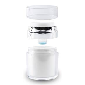 Contém: 01 - frasco recipiente para cremes e cosméticos pump 30 ml 01 - frasco recipiente para cremes e cosméticos pump 15 ml O kit de frascos recipientes para cremes e cosméticos com pump, são armazenadores compactos e elegantes, projetados para armazenar produtos de cuidados pessoais de forma prática e higiênica. Possui tampa que veda totalmente o produto, evitando vazamentos, sua primeira camada é composta por um pump no centro dele, assim quando aperta-lo, o produto sairá uniformemente no centro da embalagem. Útil, fácil de limpar após o fim do produto adicionado, podendo ser inúmeras vezes, por profissionais da área estética, como maquiadores, esteticistas, designers, utilizado para transportar seus cosméticos em viagens, e também para padronizar o armazenamento de refis, ou organizar sua penteadeira. Possui design minimalista em branco e prata. Os frascos são amplamente utilizados por sua praticidade e pelo fato de manter o produto fresco e protegido de contaminantes externos. Características principais: - kit 2 unidades; - ótimo custo benefício; - composto pelo frasco de 30ml e 15ml; - branco e prata; - pump no centro da embalagem; - acompanha tampa; - feito de material resistente; - reutilizável; - multiuso; - compacto; - mantém o produto protegido. Medidas: 30ml: 7,2 x 5,3 x 5,3 centímetros a x l x p . 15ml: 6 x 5,3 x 5,3 centímetros a x l x p . Volume: Capacidade de 30ml. Capacidade de 15ml. Boas compras ; Marca: Não Informado