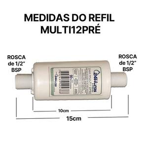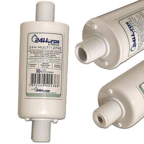 Kit 2 Refil Pré Filtro Água Universal Rosca de 1/2 Adaptação Fácil Kit 2 unidades - Pré Filtro 24H-MULTI12 - Filtro de Água Universal - Ideal para ser como Pré Filtro de outros purificadores de água, maximizando a eficiência da filtragem e a durabilidade do filtro. - Filtro Universal com Roscas de 1/2 na entrada e saída. - Pequeno: Cabe em qualquer lugar, de baixo da pia, etc. - Fácil adaptação em qualquer ponto de água, por ter rosca de 1/2 universal. - Longa duração: Vida útil estimada de 6 meses ou aproximadamente 3.000 litros a depender a qualidade da água . - O filtro elimina Partículas Sólidas e ajuda a Elevar o pH. Este filtro não reduz o cloro da água. Seu foco é reter partículas sólidas, como areia, barro, entre várias outras partículas. As marcas e produtos citados e ilustrados são propriedades de seus respectivos fabricantes e aparecem apenas para demonstrar a compatibilidade deste produto. --------------------------------------------------------------------------- Marca: 24 Horas Filtros Eficiência da retenção de partículas: Classe III Eficácia Anti-Microbiana 96%: Aprovado Produto de acordo com a norma ABNT NBT 16098:2012. Elemento filtrando destinado ao uso em água que atenda a portaria N 2.914 do Ministério da Saúde.