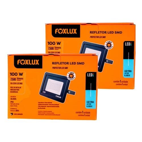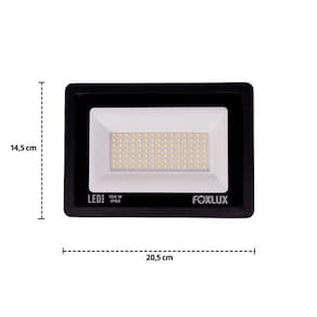Além do design moderno com espessura fina e anatômica, o refletor é desenvolvido especialmente para ficar exposto às intempéries climáticas ? fique tranquilo, a chuva, o sol ou vento não podem danificar sua luminária.O Refletor de LED Foxlux possui corpo em alumínio moldado em alta pressão com vidro de proteção temperado, frente blindada sem parafusos. Confira outras características técnicas: