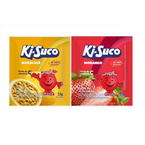 Kit 2 refresco pó ki-suco sabor maracujá e morango 225g cdNeste kit contém 2 displays de 225g cada, com 15 unidades de 15g cada. O ki-suco oferece um sabor especial e adocicado, super refrescante e prático para toda a famíliaRende 1 litroGostoso e refrescante.Com vitamina c.Com polpa de fruta.Embalagem divertida com o jarrão sorridente.Ótimo custo benefício. Ingredientes morango:Açúcar, vitamina c ácido ascórbico , suco de morango desidratado, acidulante ácido cítrico, edulcorantes: ciclamato de sódio 25mg/100ml , aspartame 19mg/100ml , acesulfame de potássio 7mg/100ml e sacarina sódica 3mg/100ml , aromatizante, regulador de acidez citrato de sódio, antiumectantes: fosfato tricálcico e dióxido de silício, corante artificiais: bordeaux s e vermelho 40, corante inorgânico dióxido de titânio e espessantes: goma xantana e goma guar.Não contém glúten. Contém fenilalanina.Ingredientes maracujá:Açúcar, vitamina c ácido ascórbico , suco de maracujá desidratado, acidulante ácido cítrico, edulcorantes: ciclamato de sódio 25,5mg/100ml , aspartame 18mg/100ml , acesulfame de potássio 4,2mg/100ml e sacarina sódica 3mg/100ml , regulador de acidez citrato de sódio, antiumectantes: fosfato tricálcico e dióxido de silício, aromatizante, corante inorgânico dióxido de titânio, corantes artificiais: tartrazina e amarelo crepúsculo fcf e espessantes: goma xantana e goma guar.Não contém glúten. Contém fenilalanina.
