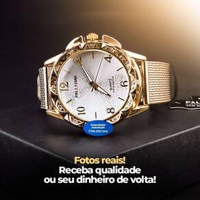 Especificações Técnicas: - Relógio Analógico Dourado: - Cor: Dourado - Prova D'água: Sim - Pulseira de Silicone Ajustável: Serve em qualquer tamanho de pulso - Material da Pulseira: Silicone - Relógio Analógico Rose: - Cor: Rose - Prova D'água: Sim - Pulseira de Silicone Ajustável: Serve em qualquer tamanho de pulso - Material da Pulseira: Silicone