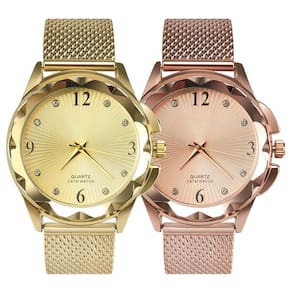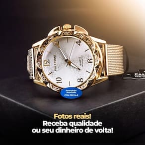 Especificações Técnicas: 1. Relógio Analógico Dourado: - Cor: Dourado - Prova D'água: Sim - Pulseira de Silicone Ajustável: Serve em qualquer tamanho de pulso - Material da Pulseira: Silicone 1. Relógio Analógico Rose: - Cor: Rose - Prova D'água: Sim - Pulseira de Silicone Ajustável: Serve em qualquer tamanho de pulso - Material da Pulseira: Silicone
