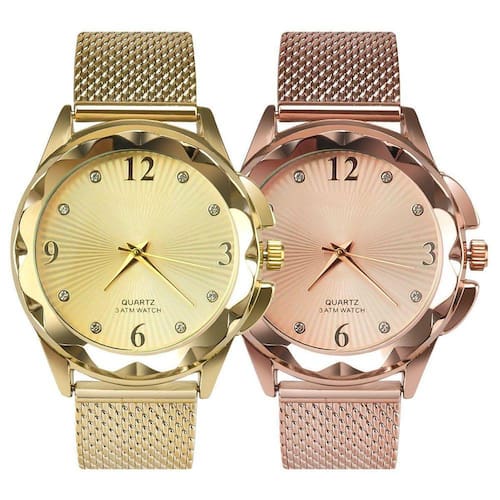 Especificações Técnicas: - Relógio Analógico Dourado: - Cor: Dourado - Prova D'água: Sim - Pulseira de Silicone Ajustável: Serve em qualquer tamanho de pulso - Material da Pulseira: Silicone - Relógio Analógico Rose: - Cor: Rose - Prova D'água: Sim - Pulseira de Silicone Ajustável: Serve em qualquer tamanho de pulso - Material da Pulseira: Silicone