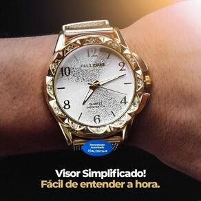 Especificações Técnicas: - Relógio Analógico Dourado: - Cor: Dourado - Prova D'água: Sim - Pulseira de Silicone Ajustável: Serve em qualquer tamanho de pulso - Material da Pulseira: Silicone - Relógio Analógico Rose: - Cor: Rose - Prova D'água: Sim - Pulseira de Silicone Ajustável: Serve em qualquer tamanho de pulso - Material da Pulseira: Silicone