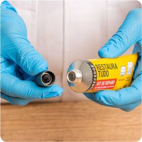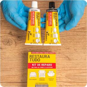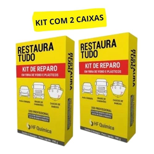Adesivo estrutural à base de resina epoxi bicomponente Kit com 2 caixas O kit de reparo restauratudo é um produto bicomponente, composto de duas bisnagas, sendo uma de resina cor branca e outra de endurecedor cor cinza . É formulado à base de resinas epóxi com excelente adesão à vários tipos de materiais. As aplicações são as mais variadas, sendo amplamente utilizado no mercado automobilístico na recuperação e reparo de parachoques, grades frontais, carenagens, faróis, etc. Também funciona para conserto de peças em fibra de vidro, metais, madeiras e diversos tipos de plásticos. Como usar É muito simples: a peça a ser trabalhada deverá estar com a região a ser colada isenta de poeira, graxa ou óleo. Para melhor resultado, recomendamos lixar com lixa grossa ou lixadeira elétrica a superfície que sofreu danos até obter uma abertura em v de 4 a 6 mm para melhor do adesivo. Misturar a resina com o endurecedor em partes iguais 1:1 em volume durante aproximadamente 1 minuto. Fique tranquilo, o tempo de trabalho com o produto misturado é suficiente para realizar o reparo antes da cura começar. Aplicar o produto já homogeneizado na peça e aguardar secagem à temperatura ambiente por quatro horas o tempo de secagem pode variar, se o dia estiver quente e seco será mais rápido, se estiver frio e úmido será mais demorado . Dá para acelerar a cura Sim colocar uma lâmpada de aquecimento sobre o local trabalhado ou se tiver disponível em suas intalações, pode usar uma estufa e colocar a peça por 30 minutos a 70 ºc. Depois de seco: lixar o excesso de adesivo, aplicar fundo e pintar a peça. Não precisa de primer Marca: Não Informado