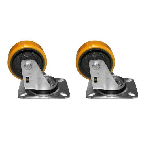 Kit 2 rodas 75mm ferro com poliuretano 3'' com placa giratória