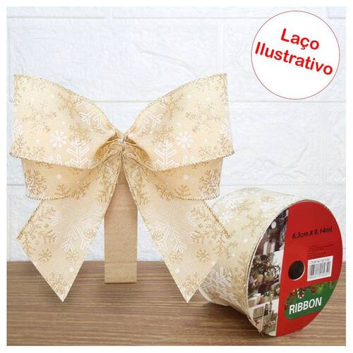 Kit 2 Rolo Fita Aramada Natal Floco De Neve Decoração Natalina 6,3cm x 9,14m -