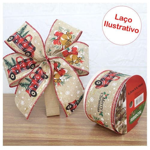 Kit 2 Rolo Fita Aramada Natal Merry Christmas Decoração Natalina 6,3cm x 9,14m