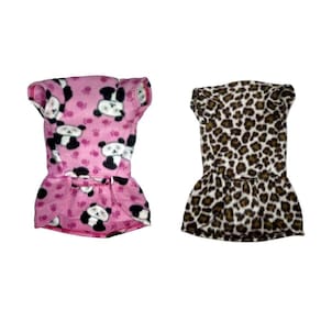 Kit 2 vestidos de inverno para cachorro. - vestidos no tecido soft; - lavável em maquina e na mão; - ótimo para usar nos dias de frio; - vestido G na cor: onça; - vestido GG na cor: rosa panda; - laço na cor do vestido; - vestido G e GG Medida - tamanho G: Pescoço - 30 cm de circunferência; abdômen/tórax: 42 cm de circunferência; comprimento: 40 cm. Medida - tamanho GG: Pescoço - 32 cm de circunferência; abdômen/tórax: 50 cm de circunferência; comprimento: 46 cm. Marca: Nicapet