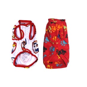 Kit 2 Roupas Para Pet - Pijama Suéter Vermelho Kit pijama e suéter para cachorro. - pijama confeccionada em malha pv poliéster com viscose na cor branca; - o pijama tem sua estampa temática nos personagens patrulha canina; - acabamento do pijama em cotton preto; - pijama super fresquinho e gostoso; - tamanho do pijama: EGG; - suéter em tecido soft, super macio e quentinho; - o suéter é ótimo para os dias de frio; - suéter na cor vermelho com patinhas coloridas; - tamanho do suéter: EG; Medidas pijama - tamanho EGG: Pescoço: 44 cm de circunferência; abdômen/tórax: 70 cm de circunferência; comprimento: 64 cm. Medidas suéter - tamanho EG: Pescoço: 40 cm de circunferência; abdômen/tórax: 58 cm de circunferência; comprimento: 56 cm. Marca: Não Informado