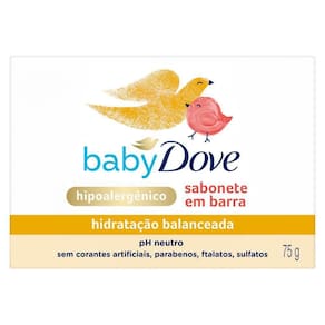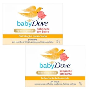 Diferentemente de outros sabonetes em barra comum de bebê*, o Sabonete em Barra Baby Dove Hidratação Balanceada é enriquecido com 1/4 de creme hidratante, mantendo a pele delicada confortavelmente macia. Contém perfume especialmente desenvolvido para peles sensíveis e é suave até para o primeiro banho. Ajuda a proteger a barreira natural da pele do seu bebê e a repôr nutriente essencial que a pele sensível do seu pequeno perde durante o banho, dando a ele o cuidado que ele precisa e ajudando a deixar sua pele nutrida e hidratada. Testado por oftalmologista, dermatologista e pediatra, o Sabonete em Barra Baby Dove Hidratação Balanceada tem pH neutro e é hipoalergênico, o que comprovadamente minimiza os riscos de alergia.