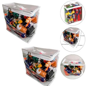 Kit 2 Saco Organizador Para Brinquedos Transparente Ziper Bloco Organizador Para Brinquedos Transparente 30x15x30 cm Mantenha a bagunça sob controle com o Bloco Organizador Transparente Feito de plástico resistente, com zíper reforçado e design compacto, é a solução perfeita para guardar brinquedos e itens pessoais com praticidade. Visualize tudo de forma rápida graças ao material transparente - ideal para o dia a dia em casa ou para organizar a mala nas viagens