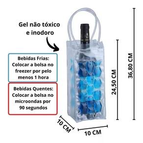 DETALHES Dimensões sem a alça: 24,5cm altura x 10cm profundidade x 10cm largura cm Dimensões com a alça: 36,8 cm altura x 10cm profundidade x 10cm largura cm Material: PVC e gel congelante Cor do Kit: 1 Transparente com gel em preto e 1 Transparente com gel azul Marca: Não Informado